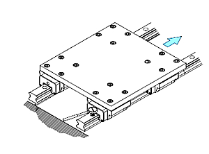仿效基準測滑軌法 將基準測滑軌的兩個滑塊及從動側滑軌其中一個滑塊固定于平臺,再將從動側的滑軌及另一個滑塊約略分別固定于機臺及平臺,以基準測滑軌為準移動平臺,從滑軌一端開始,邊確認從動側滑軌的滾動阻力,邊依序以特定的扭力鎖緊裝配螺絲。 |