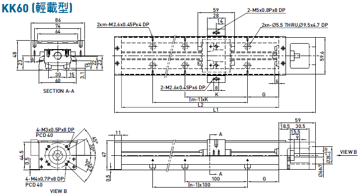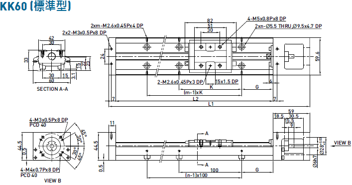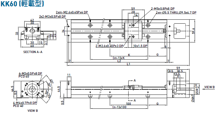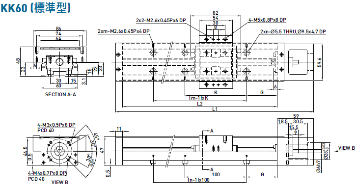 不含護(hù)蓋的KK60線性模組規(guī)格參數(shù)特點: