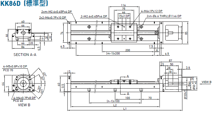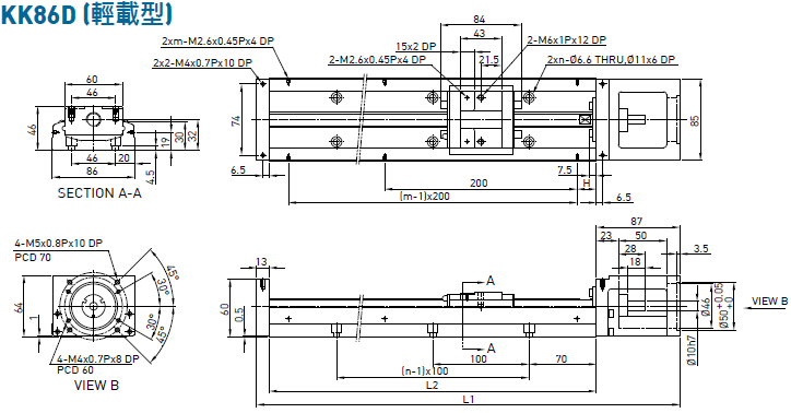 臺灣上銀KK86D線性模組是KK86的升級版。與KK86的區別,軸徑增大了2mm,其他尺寸不變,升級版KK86D直線模組更經久耐用,不易斷軸。