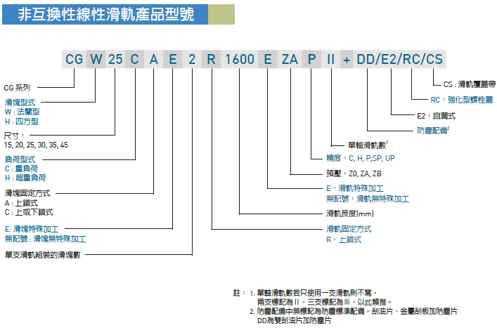 上銀CG直線導(dǎo)軌參數(shù)表: