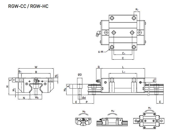 RGW系列屬于滾柱型線性導軌,以滾柱型滾動體取代了鋼珠,為實現(xiàn)超高剛性與超重負荷能力而設計;透過滾動體與導軌與滑塊的線接觸方式,讓滾動體在承受高負荷時僅僅形成微量的彈性變形,更藉由45度的接觸角度的設計,讓整體直線導軌達到四方向等高剛性、等高負荷能力的特性表現(xiàn)。透過超高剛性的實現(xiàn),可大幅提升加工精度,達到高精度的訴求;由于超重負荷的特性,進而延長直線導軌的使用壽命。