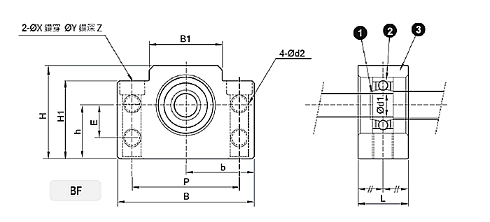 BF系列支撐座特性: 1、高剛性,適用于各種工作環(huán)境 2、噪音低 3、防塵效果好,衛(wèi)生等級(jí)高 4、高精度,保證設(shè)備穩(wěn)定運(yùn)行 |